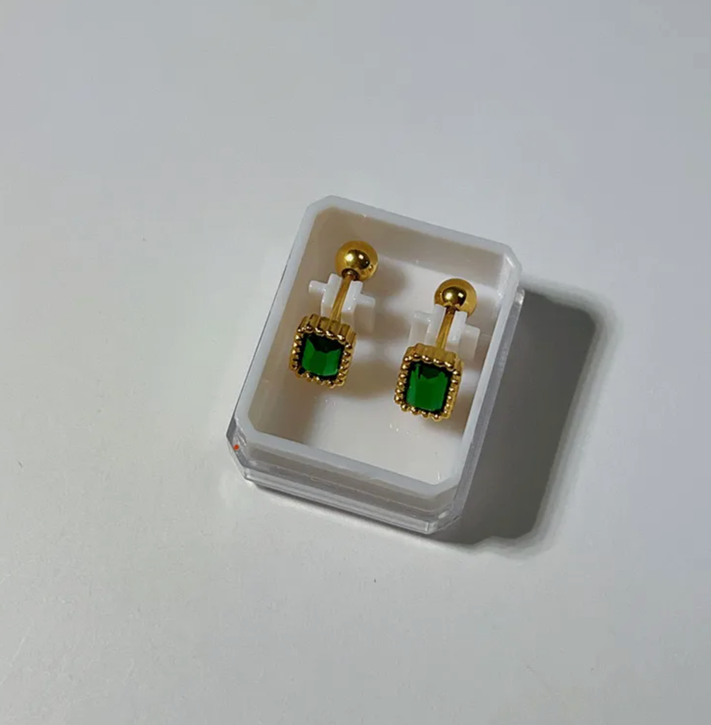 Elevate your everyday elegance with these stunning square cut emerald green studs. Featuring precisely faceted emerald gemstones set in a classic square silhouette, these earrings offer timeless sophistication with a vibrant pop of color. Perfect for both casual wear and special occasions, the rich emerald hue complements all skin tones beautifully. Secure and comfortable for all-day wear, these studs are an essential addition to any jewelry collection.